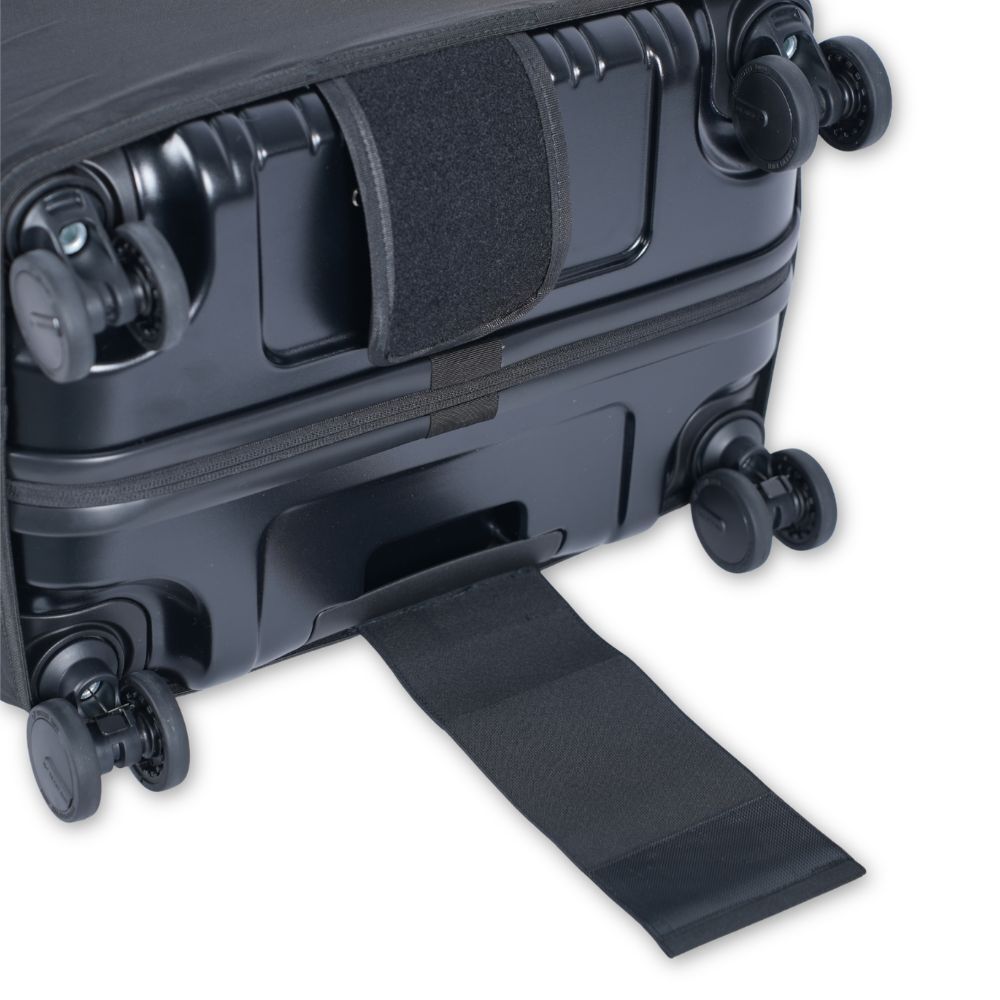 只要將底部的魔鬼氈貼合固定,就能輕鬆裝上行李箱保護套。
