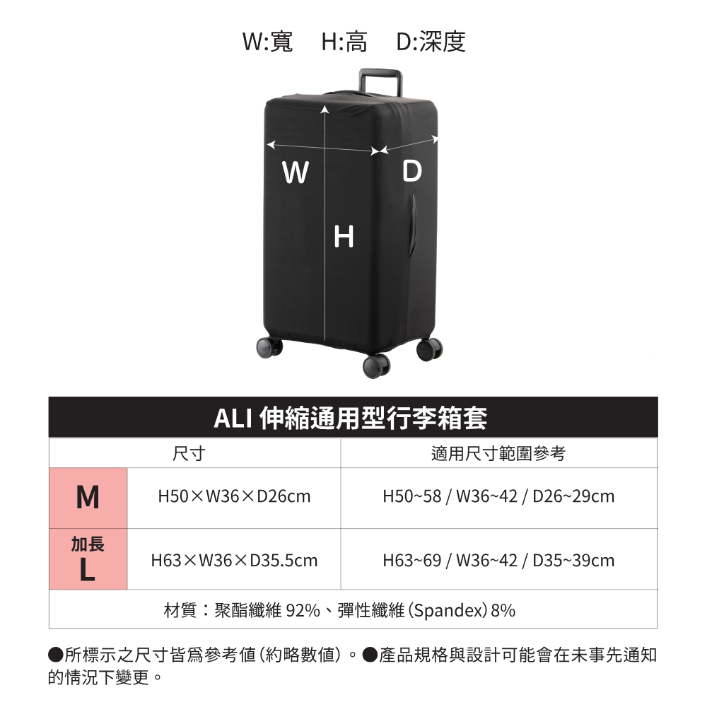 採用高彈性伸縮布料,緊密貼合行李箱外型!