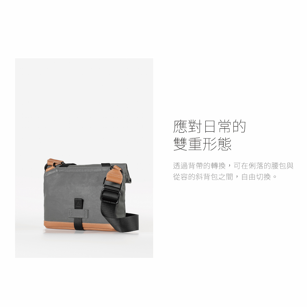 可調節背帶,可在俐落的腰包與從容的斜背包之間,自由切換。