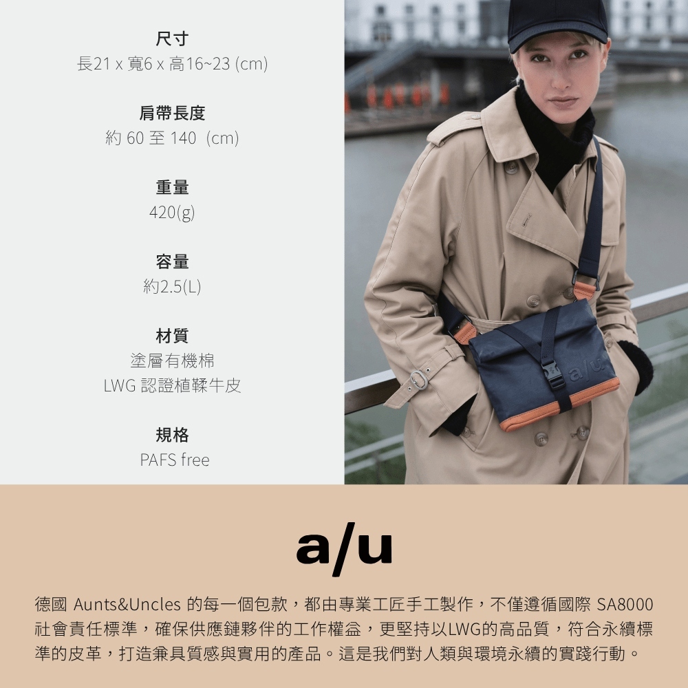 德國Aunts & Uncles 的每一個包款,都由專業工匠手工製作,不僅遵循 國際SA8000 社會責任標準,確保供應鏈夥伴的工作權益,更堅持以 LWG 的高品質,符合永續標準的皮革,打造兼具質感與實用的產品。這是對人類與環境永續的實踐行動。