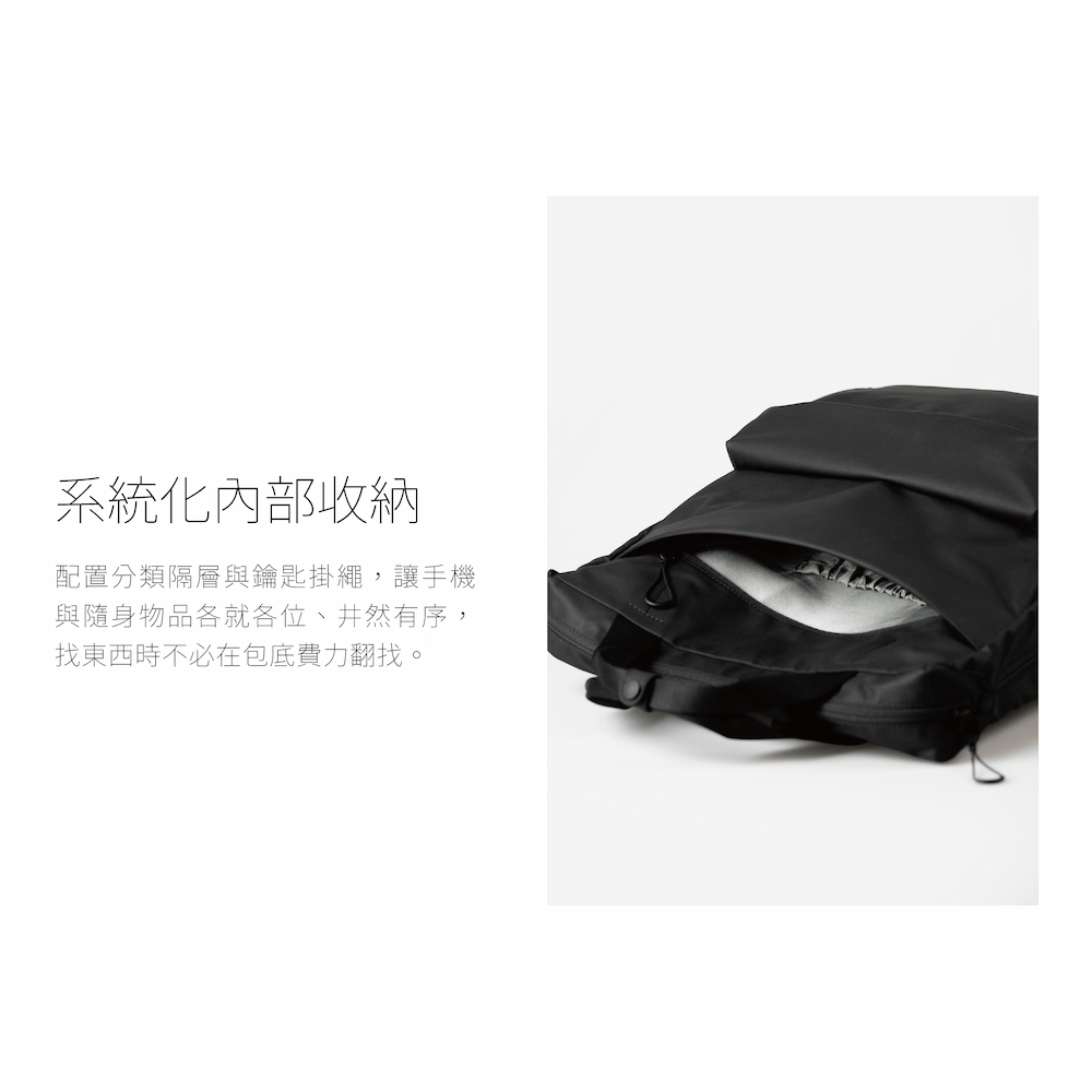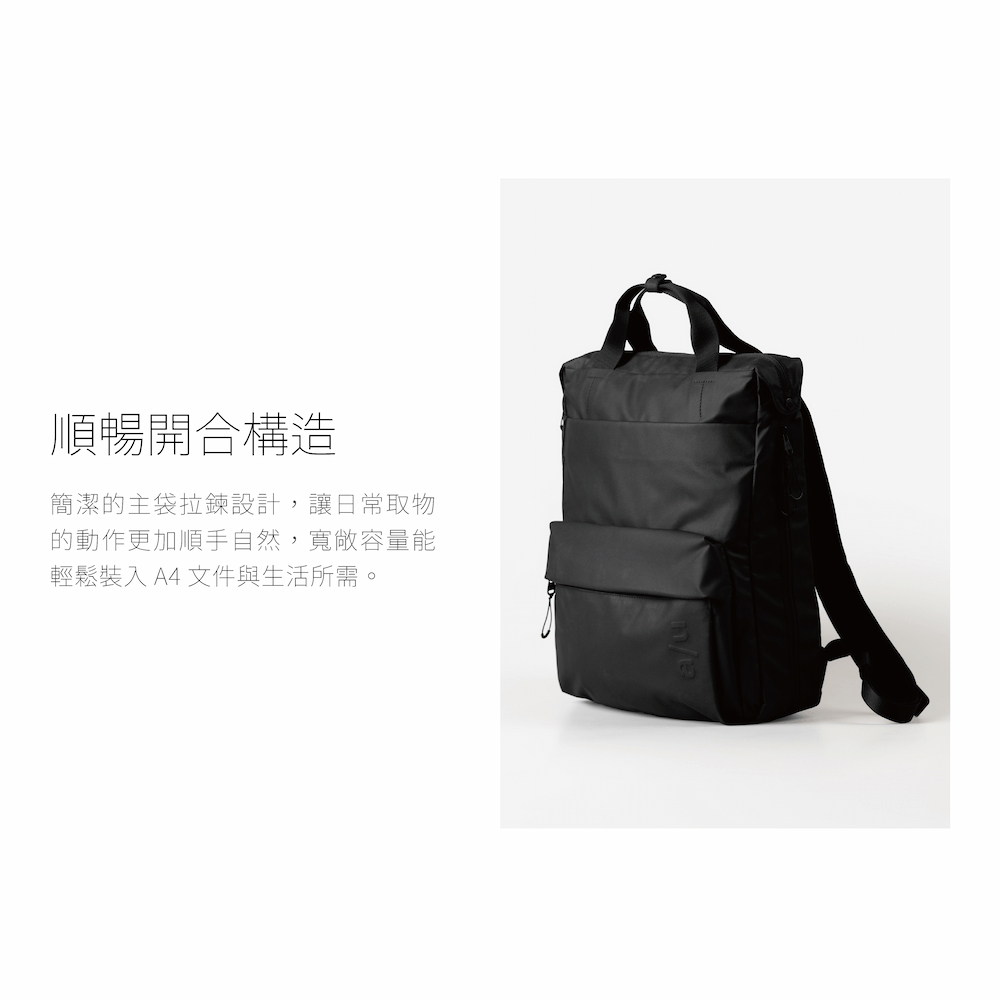 順暢開合構造,俐落拉鍊設計,取物順手不費力,輕鬆容納 A4 與日常所需。