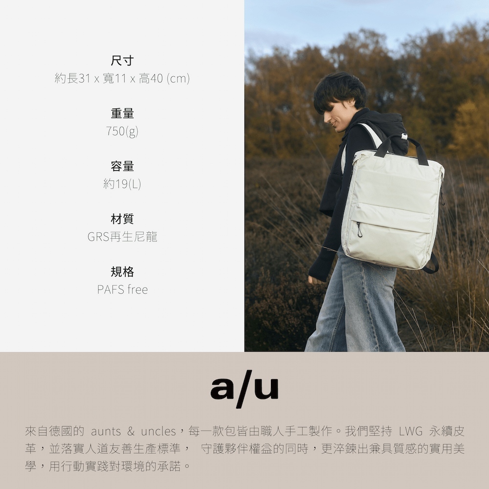 德國Aunts & Uncles 的每一個包款,都由專業工匠手工製作,不僅遵循 國際SA8000 社會責任標準,確保供應鏈夥伴的工作權益,更堅持以 LWG 的高品質,符合永續標準的皮革,打造兼具質感與實用的產品。這是對人類與環境永續的實踐行動。