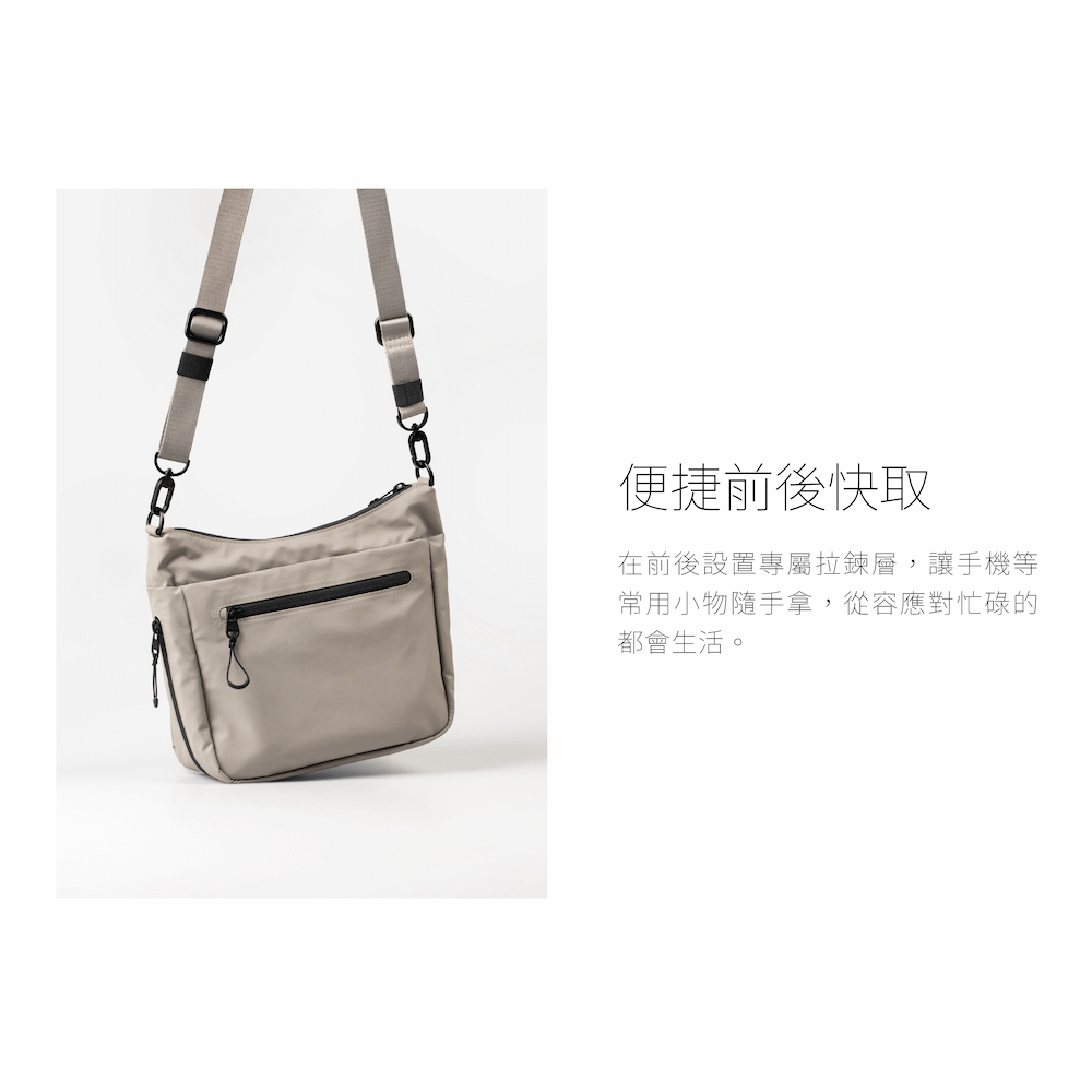 前後拉鍊層設計,手機與小物隨手可取,輕鬆應對都市生活。