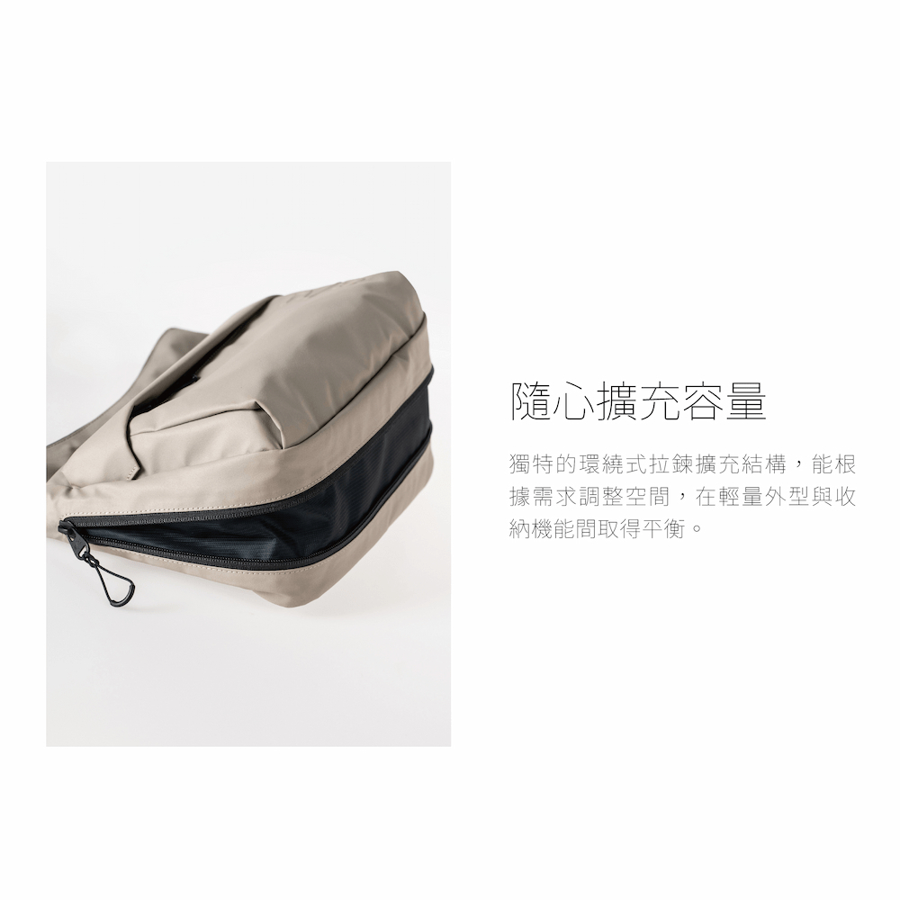 環繞式拉鍊設計,容量可隨需求靈活擴充。