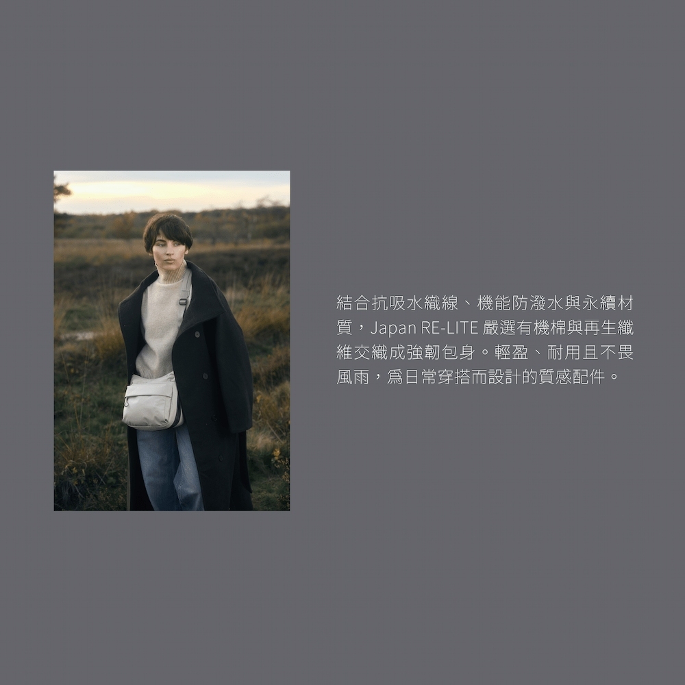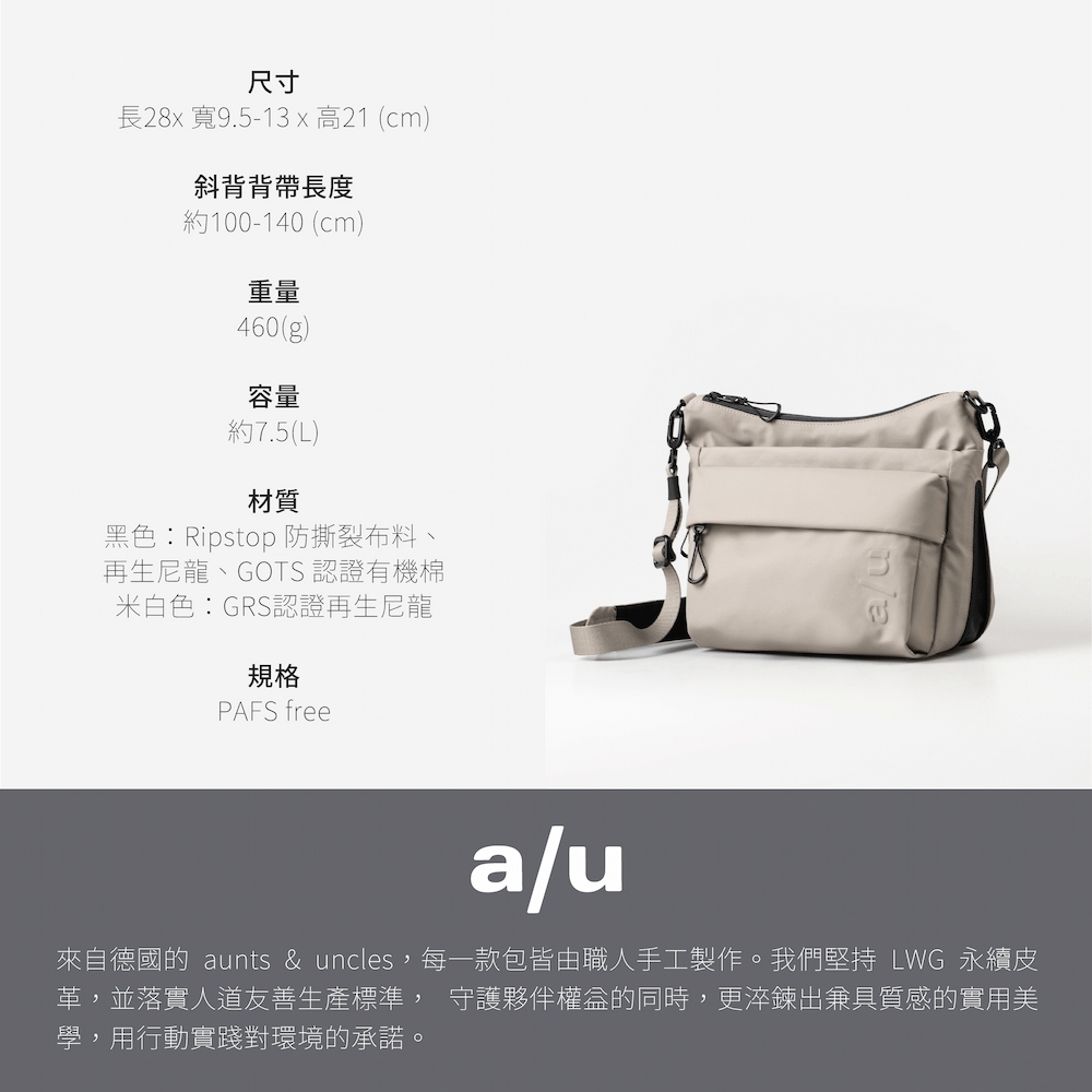 材質:【黑色】Ripstop 防撕裂布料、再生尼龍、GOTS 認證有機棉;【米白色】GRS認證再生尼龍