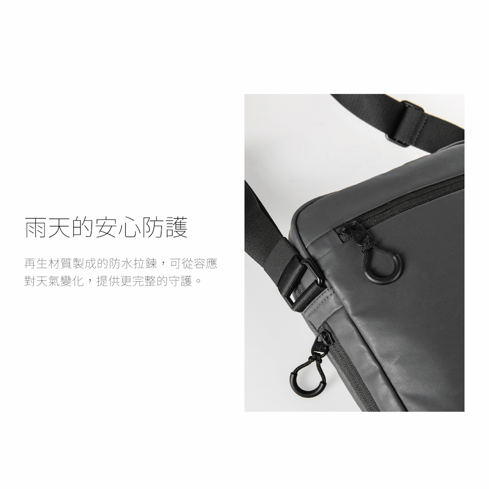 ◆雨天的安心防護 | 再生材質製成的防水拉鍊,可從容應對天氣變化,提供更完整的守護。