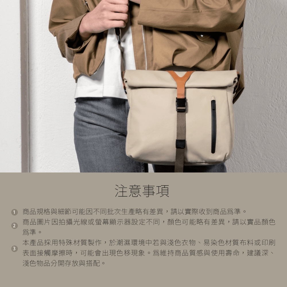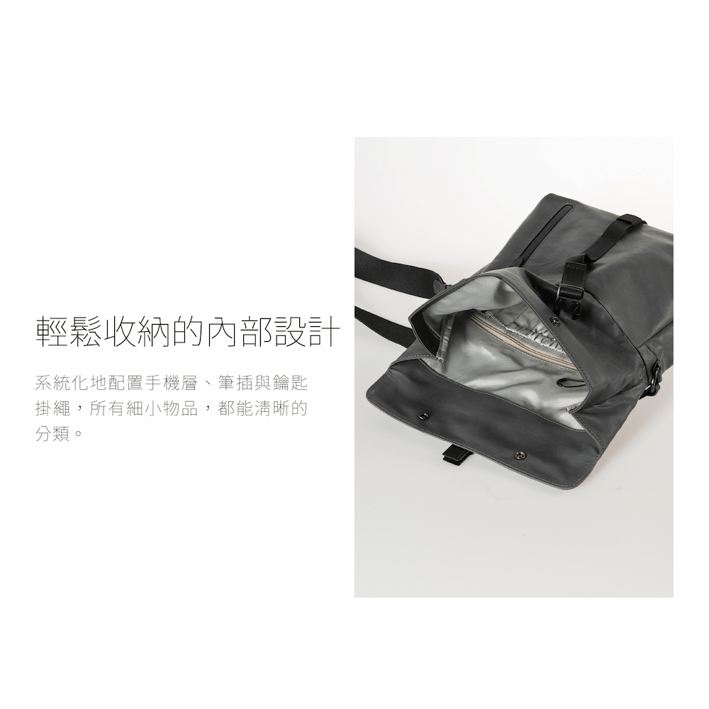 ◆兼顧彈性與安全的卷蓋設計| 頂部的捲蓋與鈕扣,不僅可應付臨時收納需求,搭配正面的插扣,增加安全性。