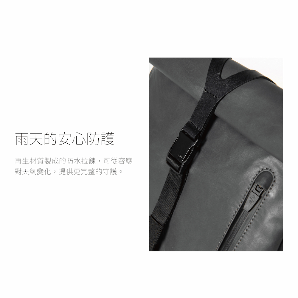◆雨天的安心防護 | 再生材質製成的防水拉鍊,可從容應對天氣變化,提供更完整的守護。