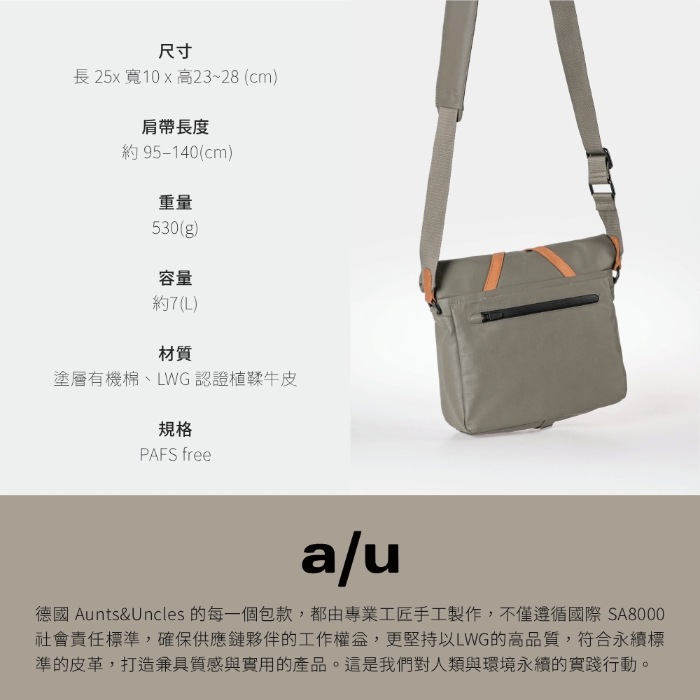 德國Aunts & Uncles 的每一個包款,都由專業工匠手工製作,不僅遵循 國際SA8000 社會責任標準,確保供應鏈夥伴的工作權益,更堅持以 LWG 的高品質,符合永續標準的皮革,打造兼具質感與實用的產品。這是對人類與環境永續的實踐行動。