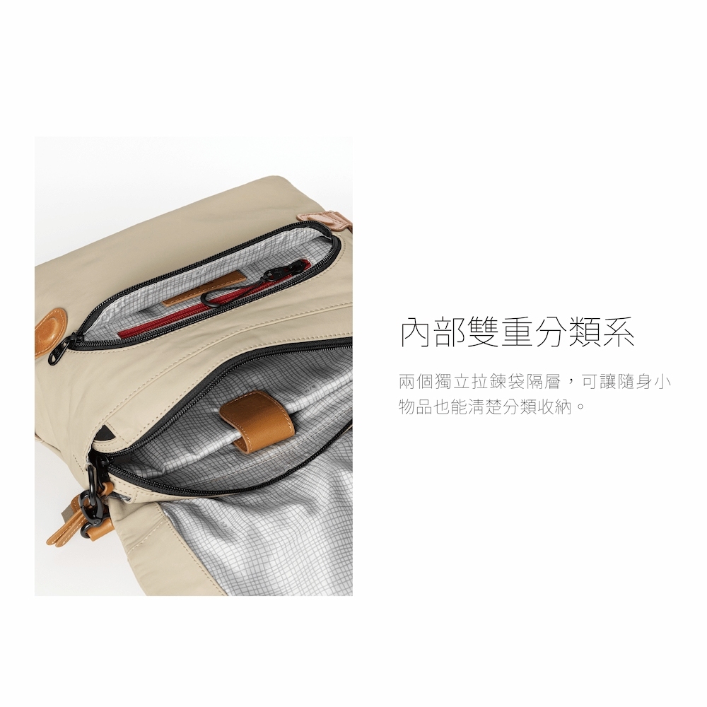 ◆ 內部雙重分類系| 兩個獨立拉鍊袋隔層,可讓隨身小物品也能清楚分類收納。