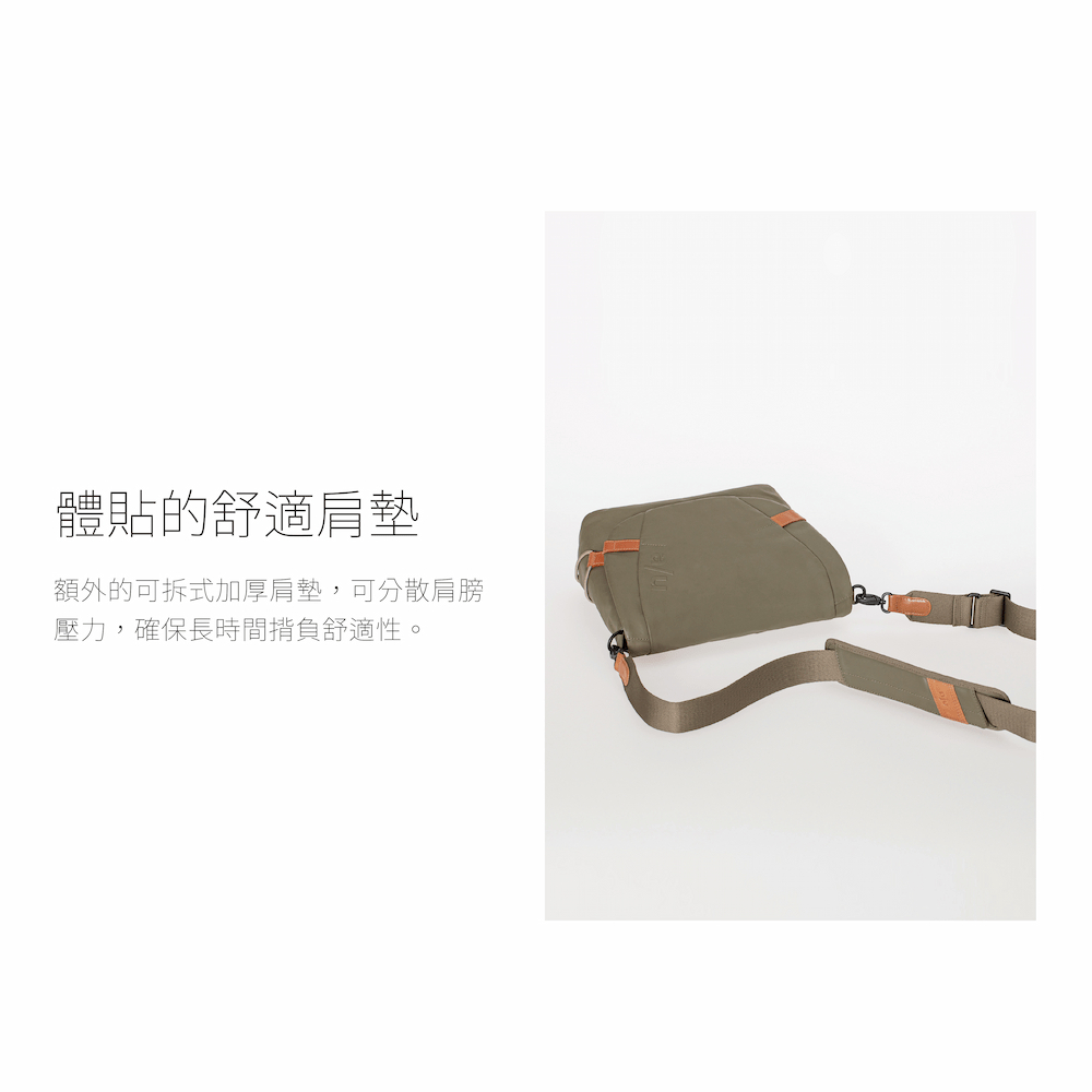 體貼的舒適肩墊 ,可分散肩膀壓力。