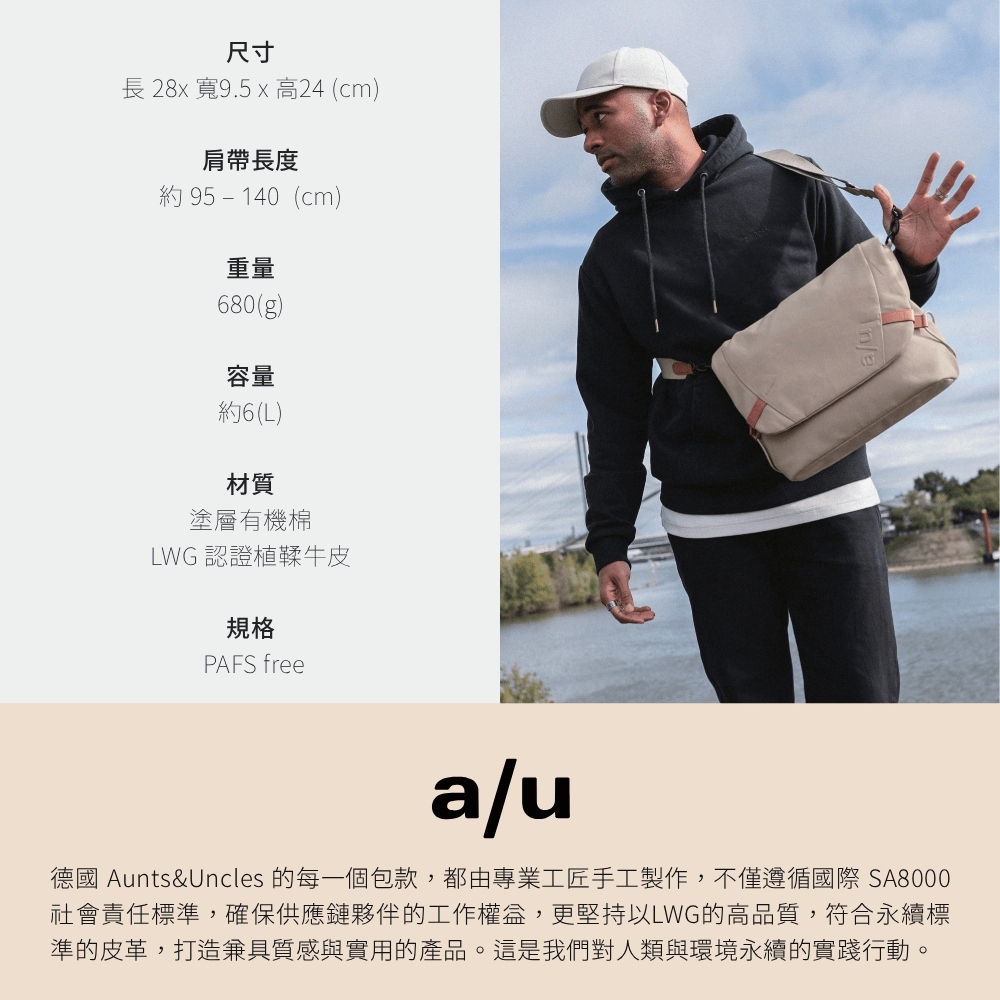 德國Aunts & Uncles 的每一個包款,都由專業工匠手工製作,不僅遵循 國際SA8000 社會責任標準,確保供應鏈夥伴的工作權益,更堅持以 LWG 的高品質,符合永續標準的皮革,打造兼具質感與實用的產品。這是對人類與環境永續的實踐行動。