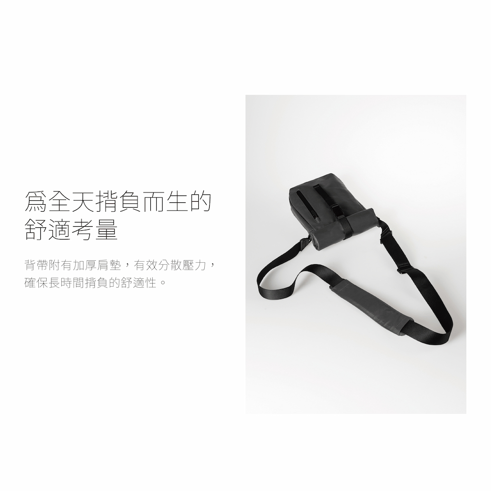 背帶附有加厚肩墊,有效分散壓力,確保長時間揹負的舒適性。