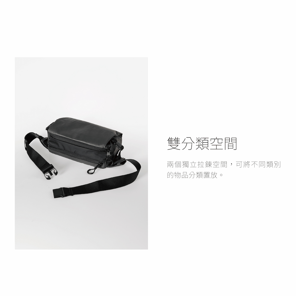 ◆雙分類空間|兩個獨立拉鍊空間,可將不同類別的物品分類置放。