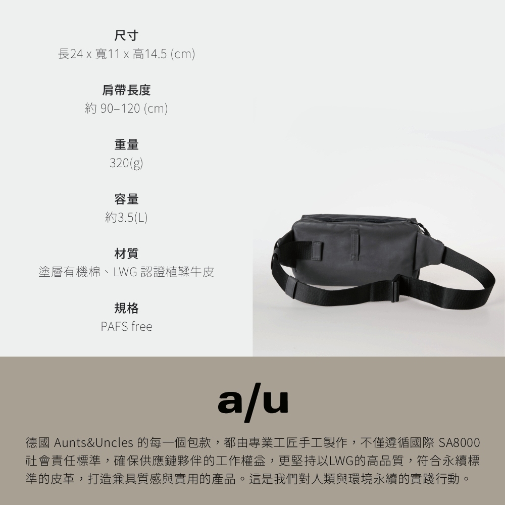 德國Aunts & Uncles 的每一個包款,都由專業工匠手工製作,不僅遵循 國際SA8000 社會責任標準,確保供應鏈夥伴的工作權益,更堅持以 LWG 的高品質,符合永續標準的皮革,打造兼具質感與實用的產品。這是對人類與環境永續的實踐行動。