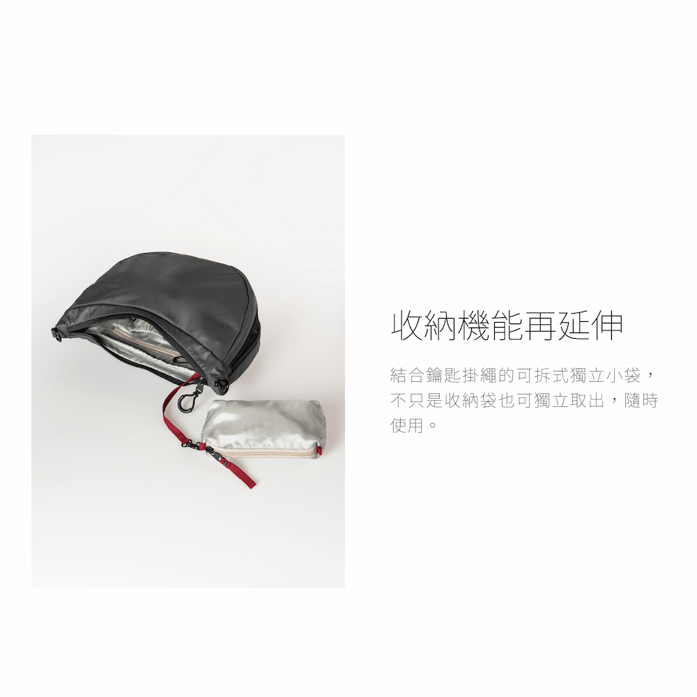 附鑰匙掛繩可拆式獨立小袋,不只是收納袋也可獨立取出,隨時使用。