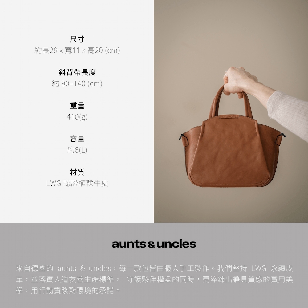德國Aunts & Uncles 的每一個包款,都由專業工匠手工製作,不僅遵循 國際SA8000 社會責任標準,確保供應鏈夥伴的工作權益,更堅持以 LWG 的高品質,符合永續標準的皮革,打造兼具質感與實用的產品。這是對人類與環境永續的實踐行動。