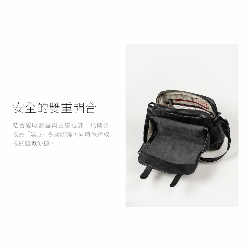 磁吸翻蓋結合拉鍊主袋,雙重防護,取物更直覺便利。