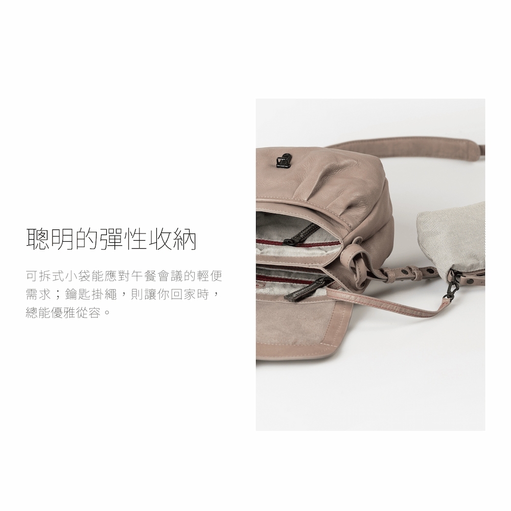 彈性收納|附可拆小袋與鑰匙掛繩,活動更優雅從容。