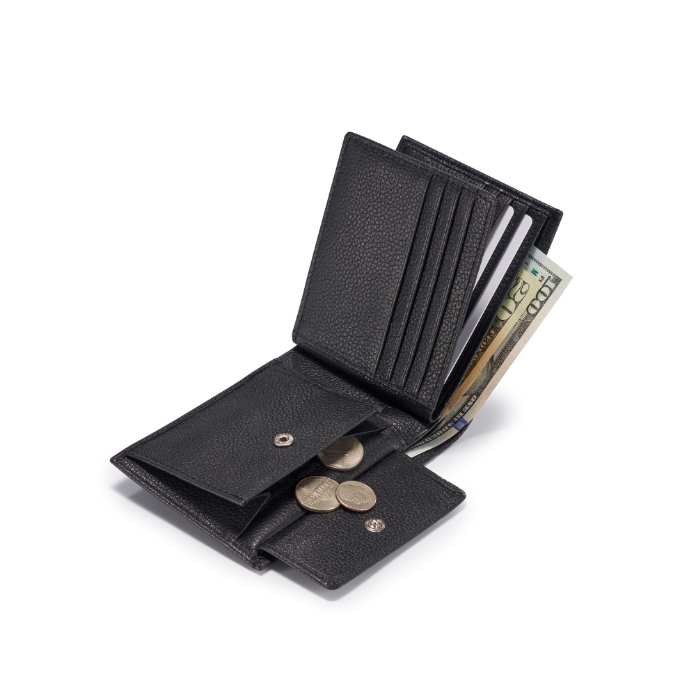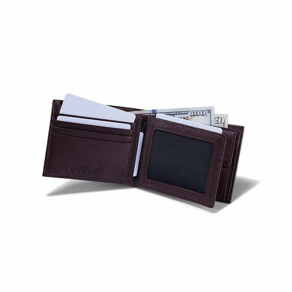 說明:雙層鈔票夾/1壓釦式零錢袋/固定式中翻卡夾/8卡夾/1網狀透明窗