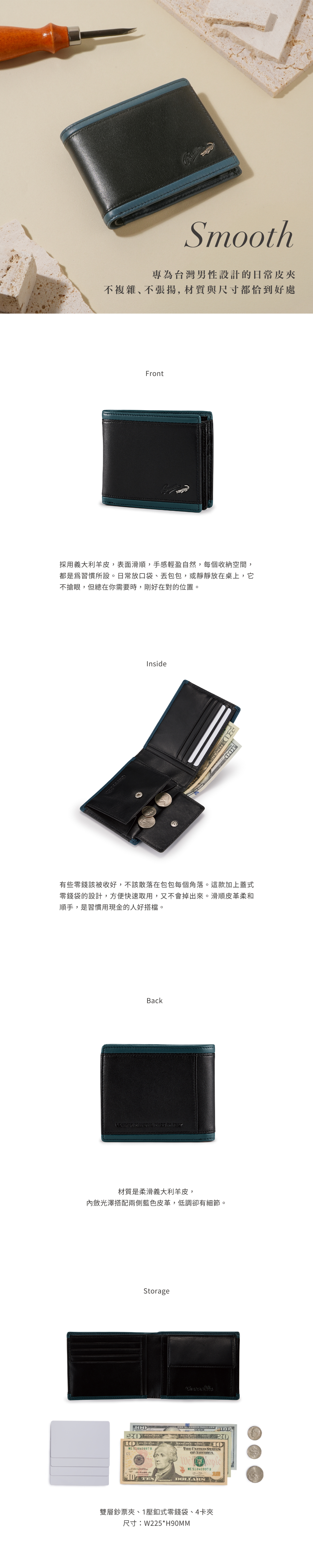 說明:雙層鈔票夾/1壓釦式零錢袋/4卡夾
