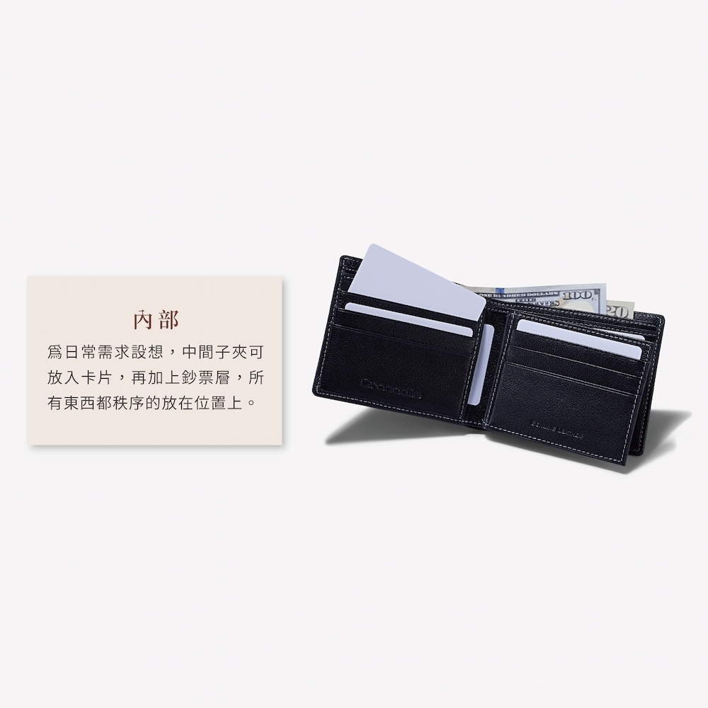 說明:雙層鈔票夾/固定式子夾/11卡夾/2網狀窗格