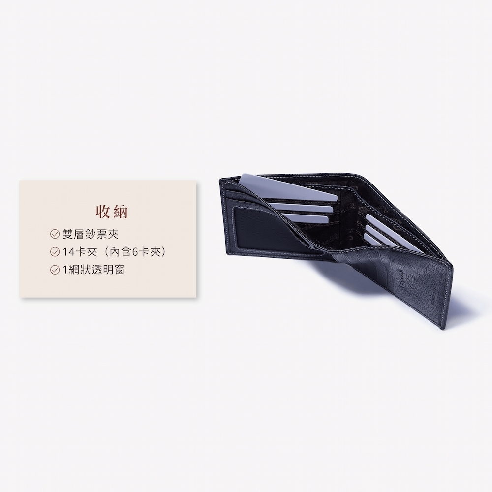 說明:雙層鈔票夾/14卡夾(內含6卡夾)/1網狀窗格