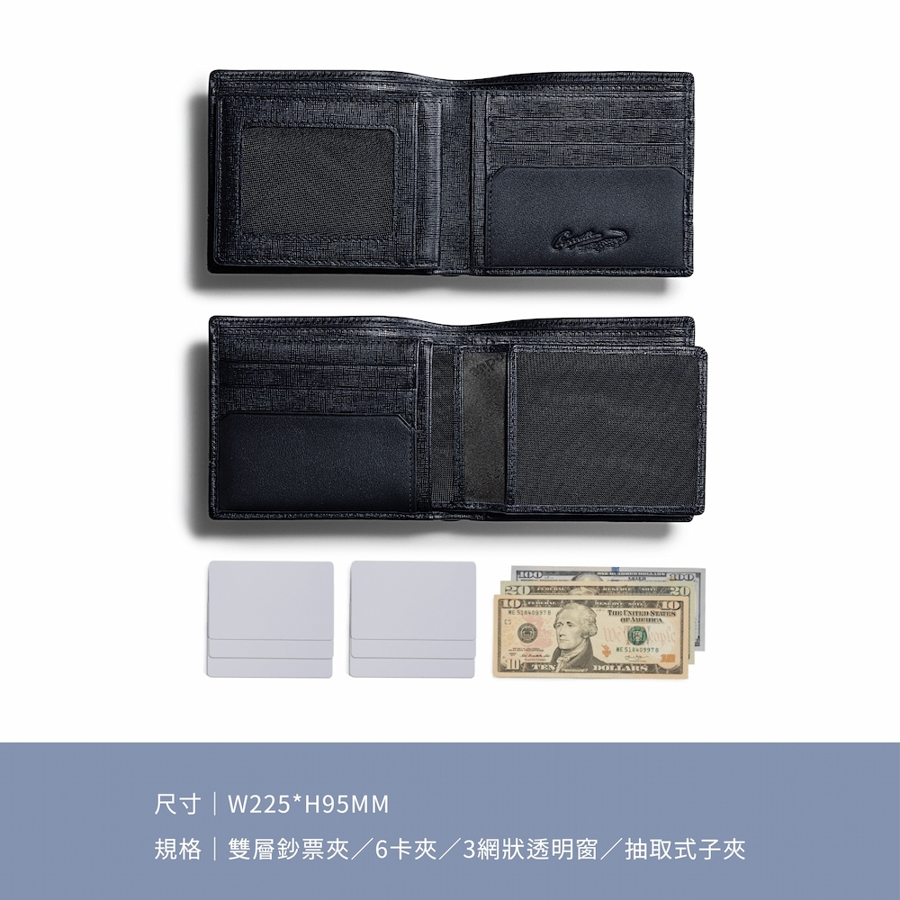 說明:雙層鈔票夾/6卡夾/3網狀透明窗/抽取式子夾