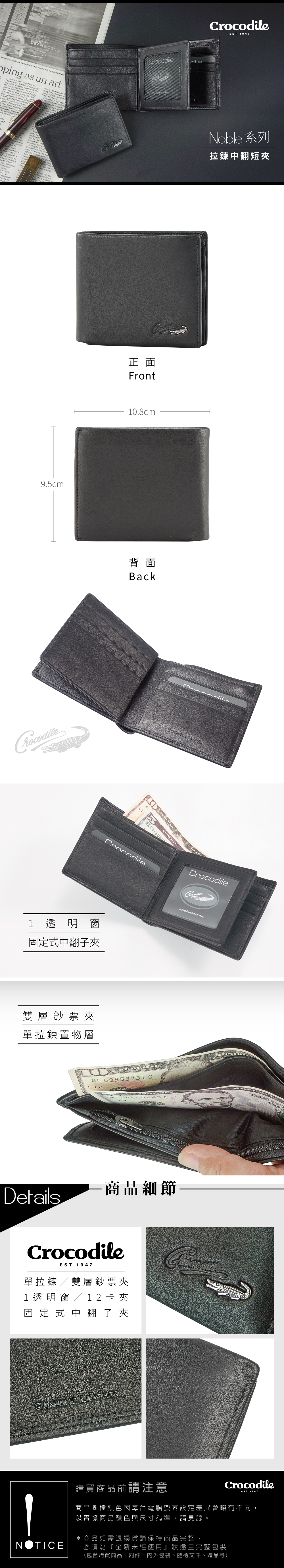 單拉鍊/雙層鈔票夾/1透明窗