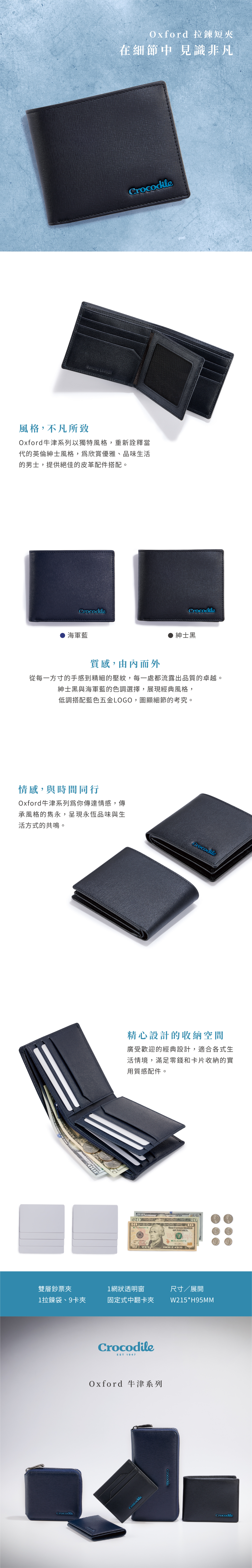 說明:雙層鈔票夾/1拉鍊袋/9卡夾/1網狀透明窗/固定式中翻卡夾