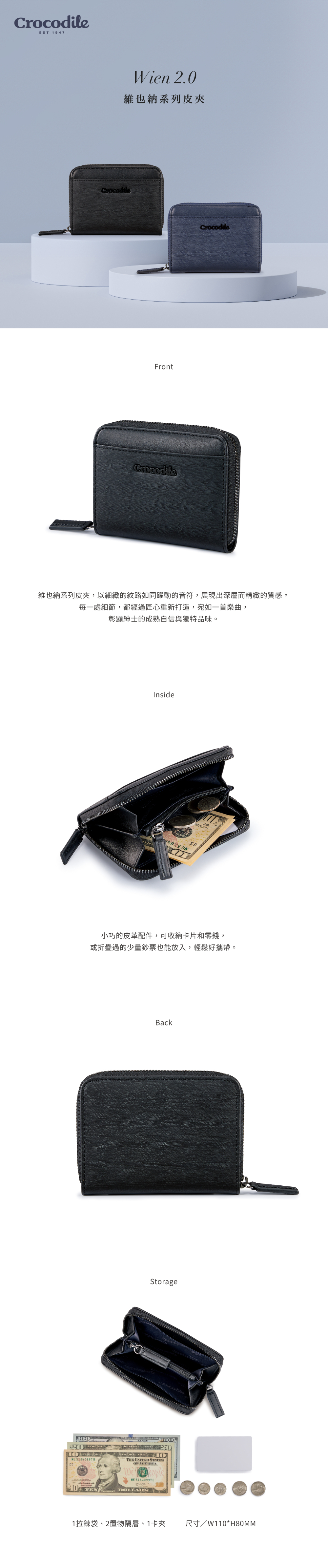 說明:1拉鍊袋/2置物隔層/1卡夾