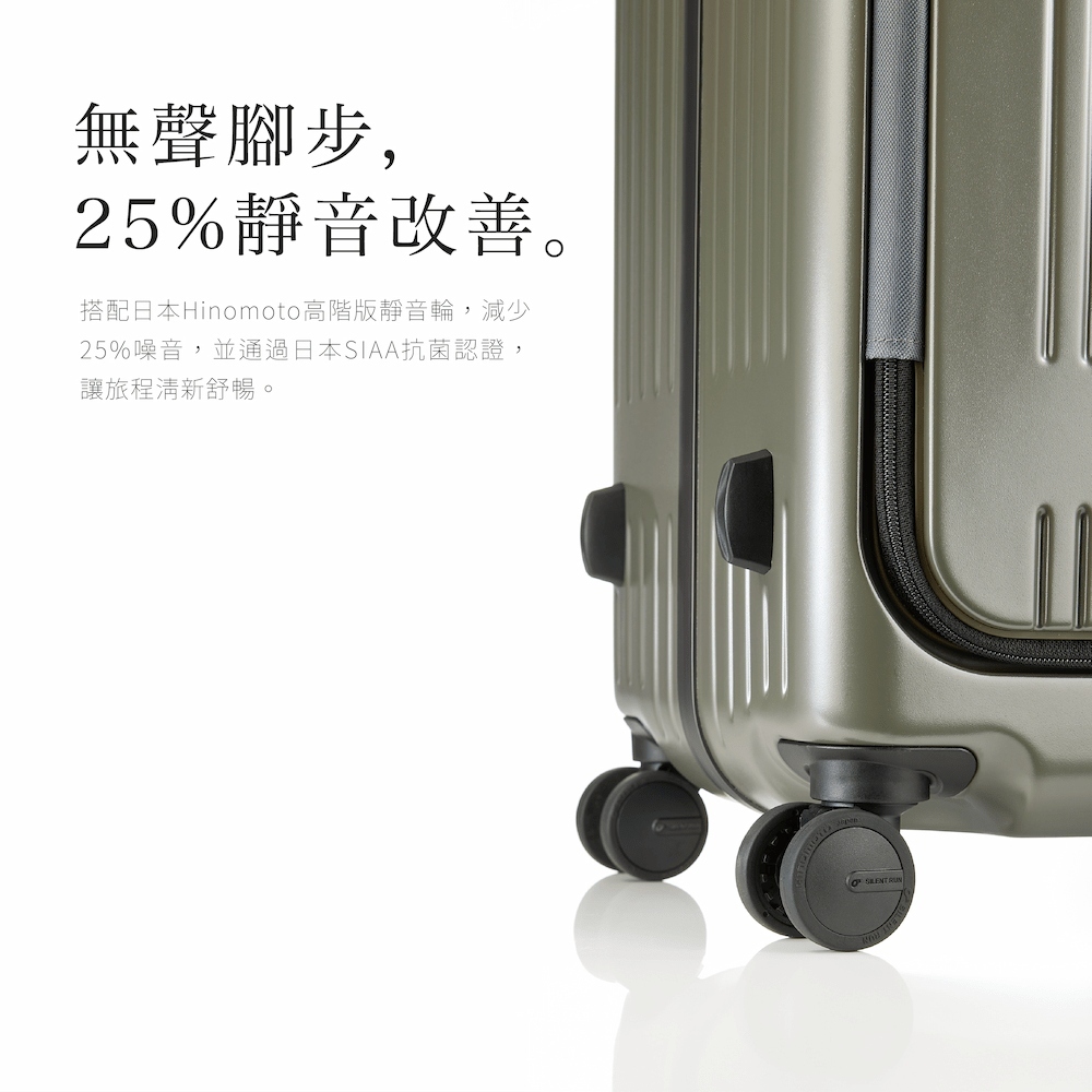 我們利用Hinomoto Lisof靜音輪比前代靜音提升25%,提供了更寧靜的移動體驗,加上日本SIAA抗菌認證,更保障了你的寧靜旅行。
