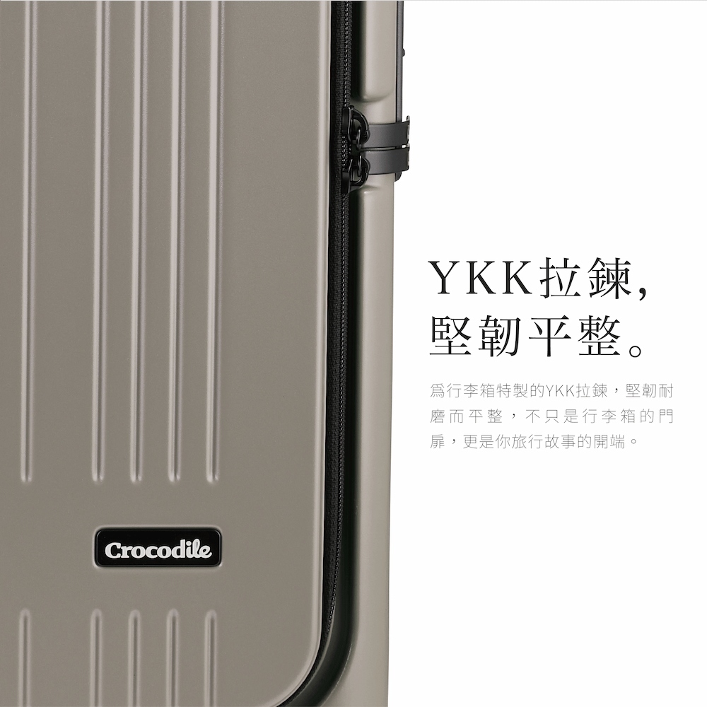 為行李箱特製的YKK拉鍊,堅韌耐磨而平整,不只是行李箱的門扉,更是你旅行故事的開端。