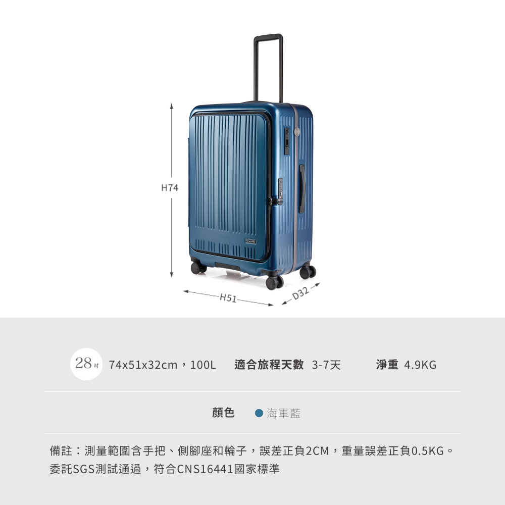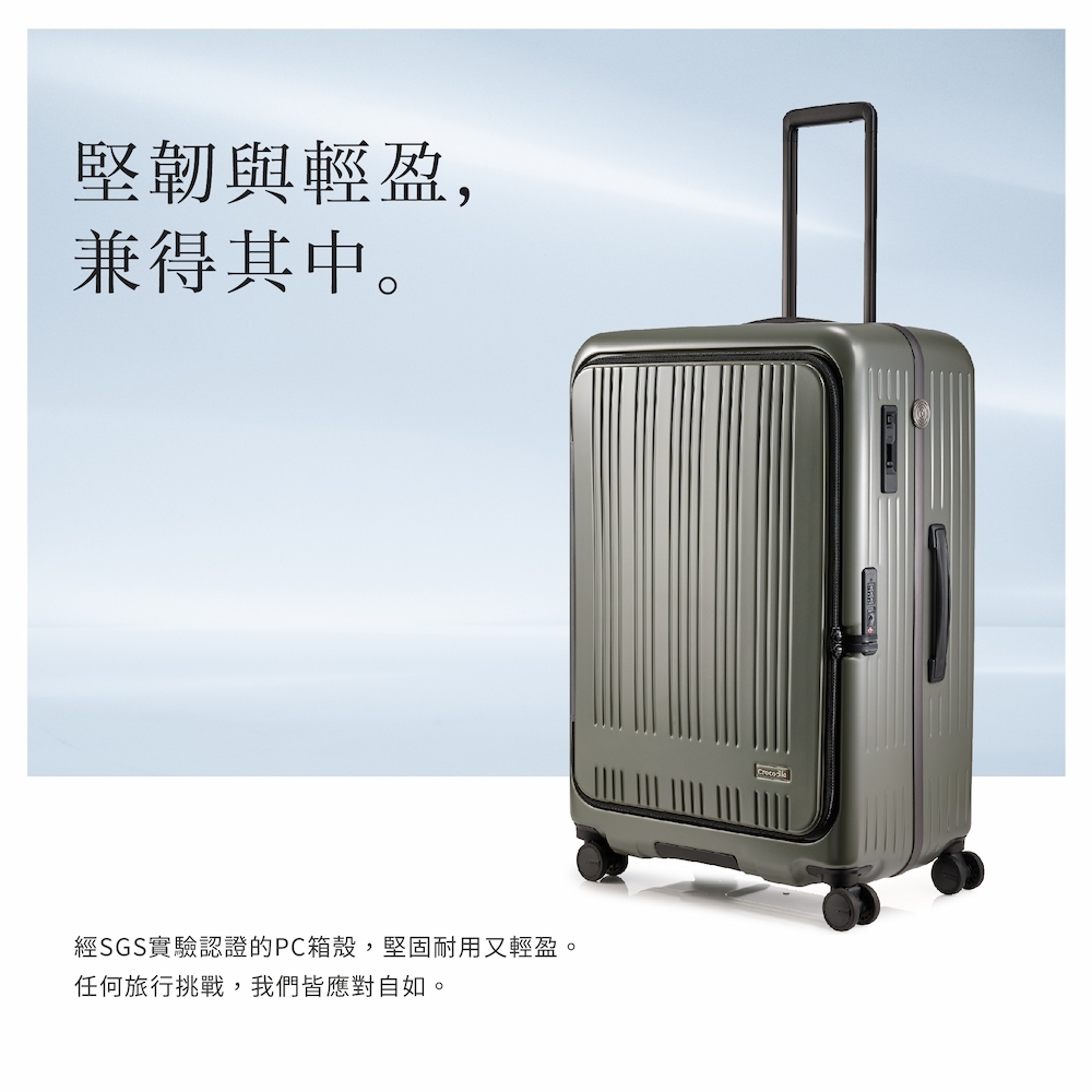 28吋鋁框行李箱 前開旅行箱推薦 日本靜音輪 一鍵煞車功能 出國行李箱 0111-08438-海軍藍-Crocodile 鱷魚皮件-網路獨賣款