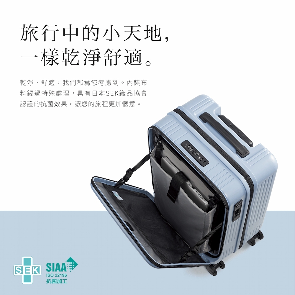 乾淨、舒適,我們都為您考慮到。內裝布料經過特殊處理,具有日本SEK織品協會認證的抗菌效果,讓您的旅程更加愜意。