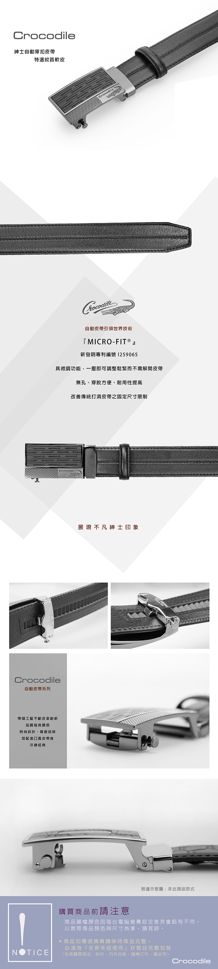 義大利進口牛皮 自動皮帶 紳士皮帶 32MM-0101-42011-黑色-Crocodile 鱷魚皮件