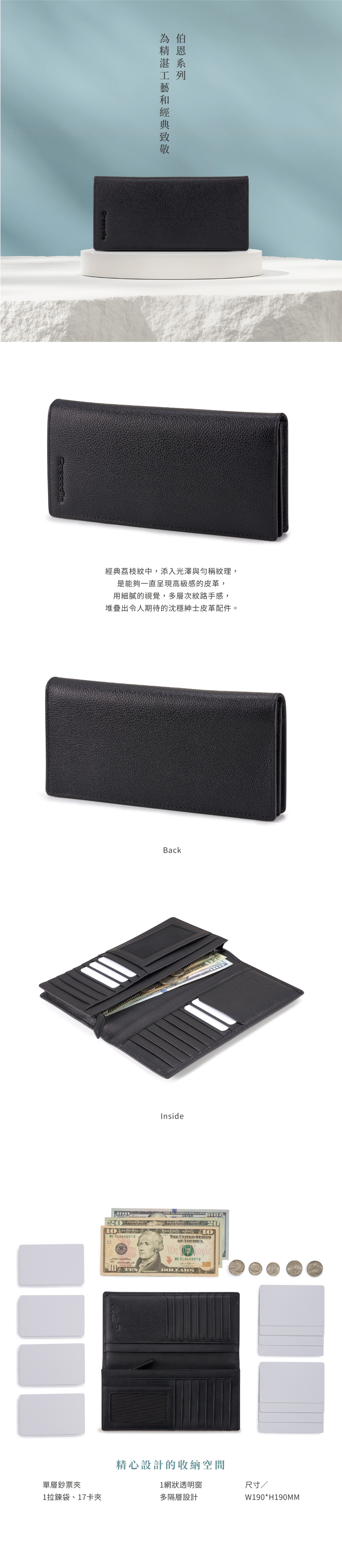 說明:單層鈔票夾/1拉鍊袋/17卡夾/1網狀透明窗/多隔層設計