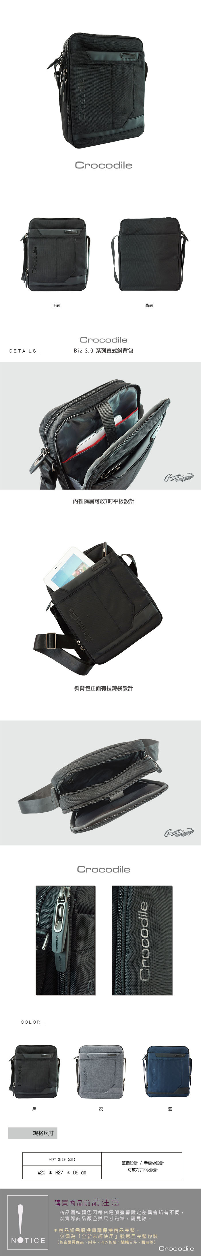 直式斜背包 側背包推薦(S) 輕量尼龍包 可放7吋平板 多置物袋設計 Biz 3.0系列 0104-07804-黑藍兩色-Crocodile 鱷魚皮件