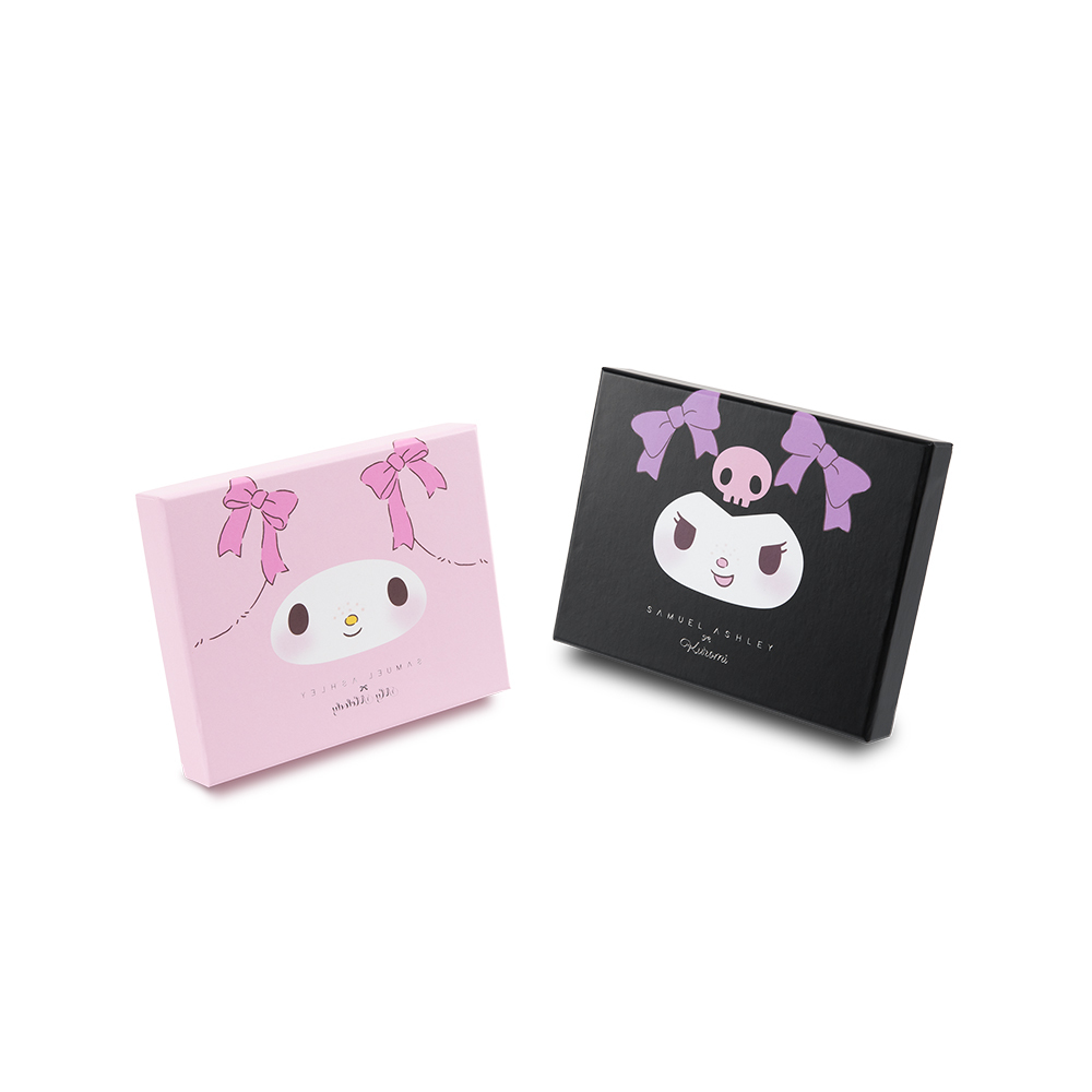 全新登場的聯乘系列從真摯友情出發。悉心打扮的My Melody及Kuromi耳朵都綁上了可愛萌爆的蝴蝶結,各自緊緊擁抱着好朋友 – 分別是Flat和Baku一同亮相。Flat是一隻擁有一雙大耳朵的藍色小老鼠,性格隨和友善,也帶點害羞,是My Melody最要好的朋友;Baku則是「小惡魔」Kuromi的手下,常常載着她飛上天空。Baku非常有耐性,能夠包容Kuromi日常的小惡作劇。閨蜜可以是個性相近,也同樣可以迥異不同,無論個性是率直可愛;或是淘氣搞怪,與摯友相依相偎,彼此分享苦樂,來當一輩子的好朋友吧!