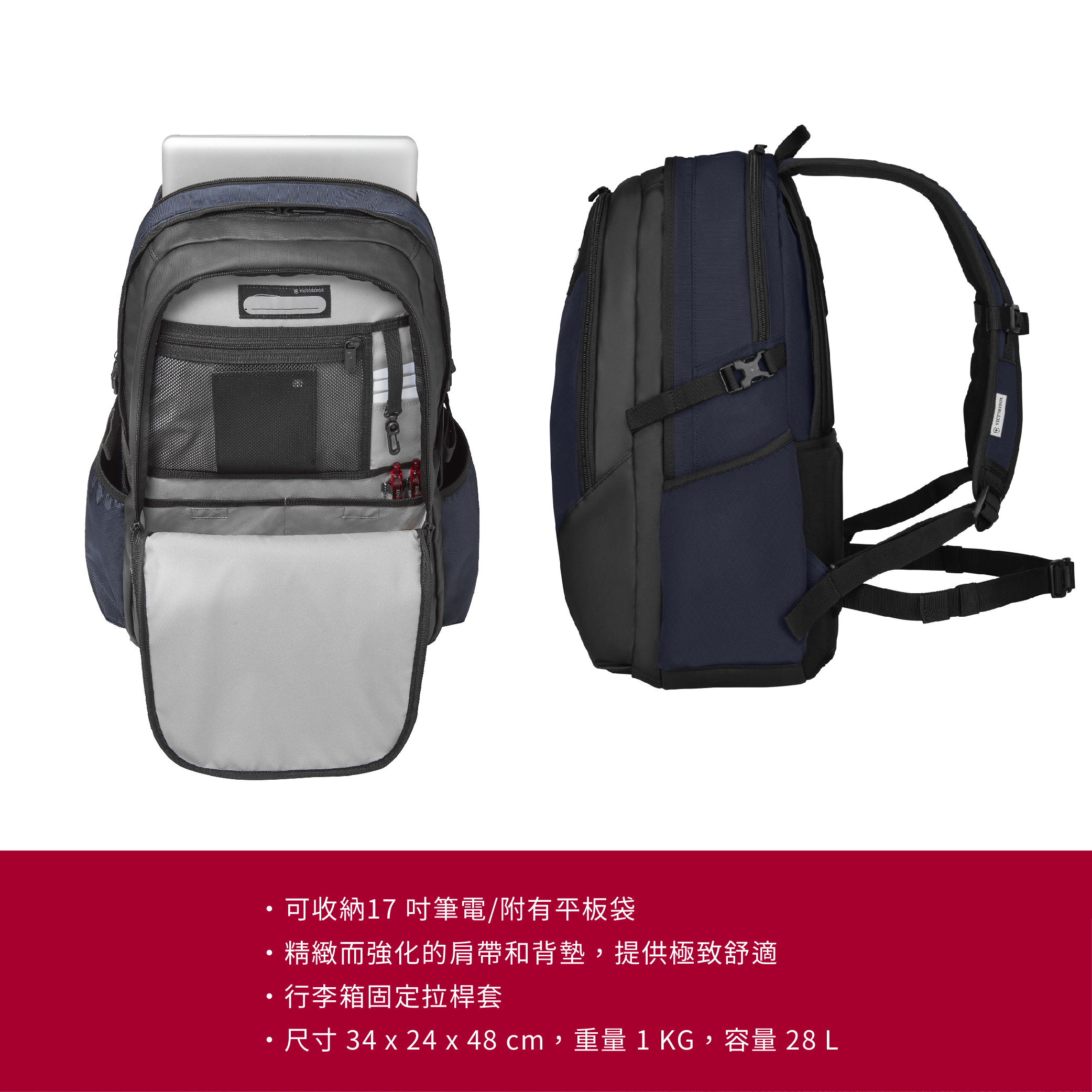 說明:傳統外觀中加入現代化風格。專用筆電保護袋和可擴展隔層設計,空間足夠放置您的筆電和其他裝置。將需要的一切都整齊收納在便利的背包中,做好準備迎接工作、面對會議挑戰。