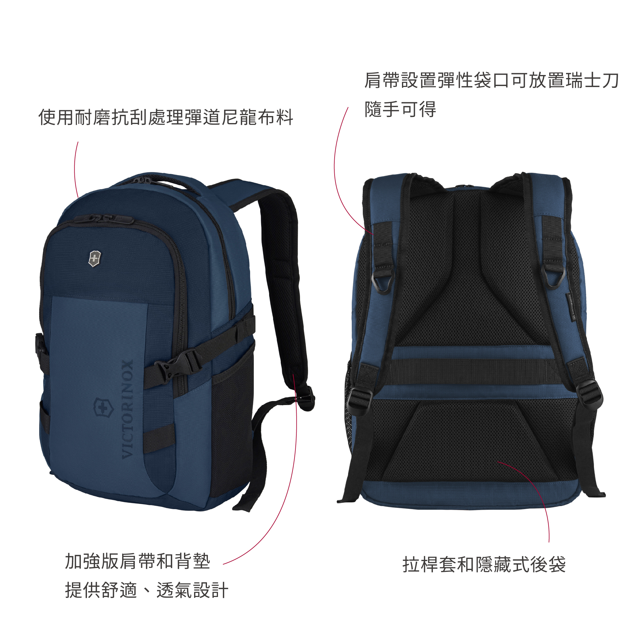 肩帶設置彈性袋口可放置瑞士刀,隨手可得